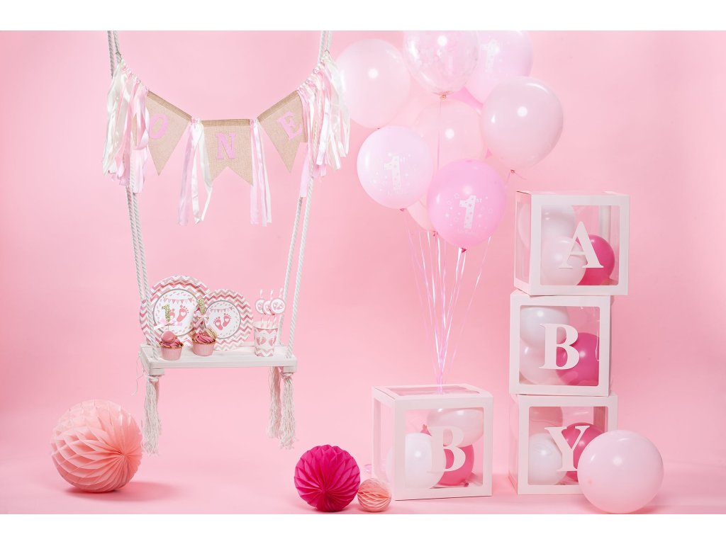 Balónky k 1 narozeninám, růžové, 30cm, 6ks, mix