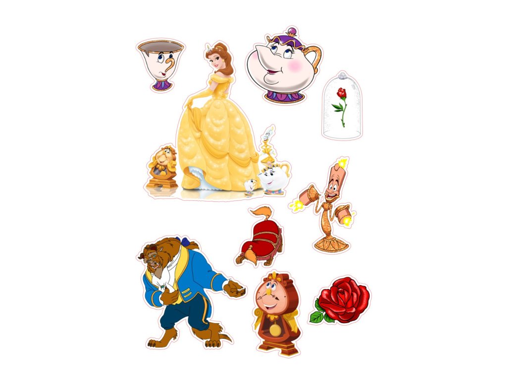 Bella: bella, zvíře, kras, pohádka, princezna, šaty, tanec, žluté, čajník, šálek, svícen, růže, dort, ozdoba,