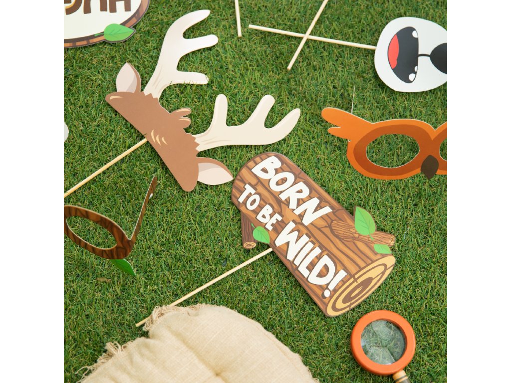 Výška podpěry od 5 do 17 cm Výška cca 20 cm Sada obsahuje: 9 rekvizit (3 nápisy, 3 nosy zvířat, 2 páry brýlí, rohy), 9 dřevěných tyčinek a 20 lepicích teček a 3 proužky pásky k připevnění rekvizit.