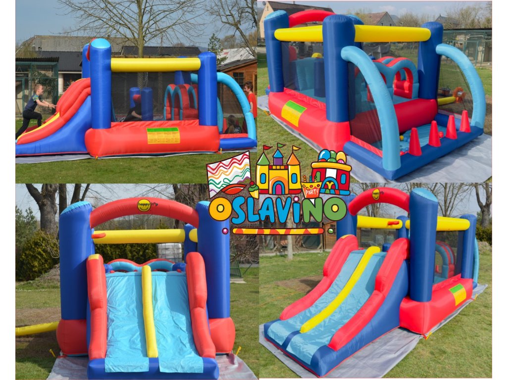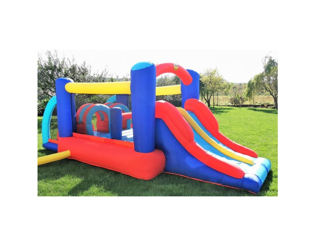 Fun park je nejen skákacím hradem, ale nabízí mnoho dalších možností zábavy pro vaše děti. Mimo oblíbené skákání se celá atrakce dá aktivně prolézat, nebo probíhat dokola. Na děti čeká bazének s míčky, překážky, házecí koš, malá horolezecká stěna a dvojitá skluzavka.