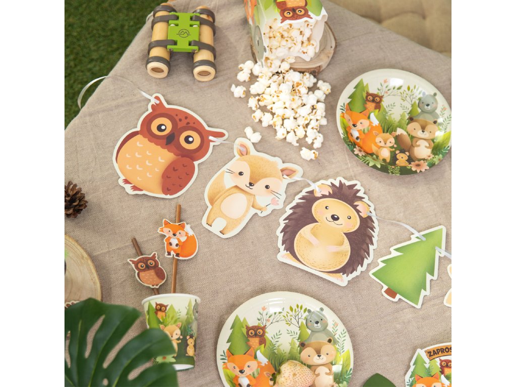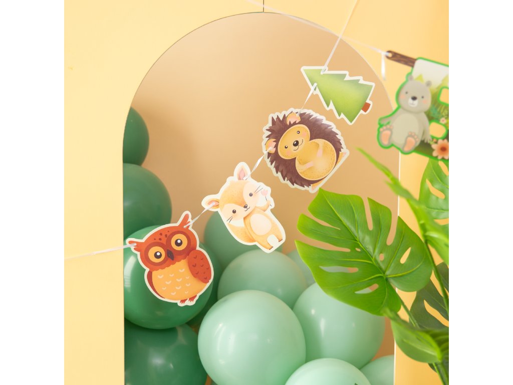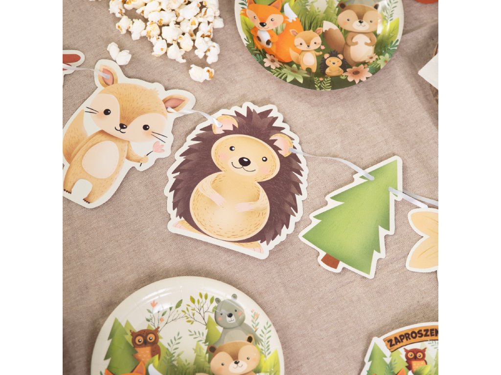 Roztomilá papírová girlanda s motivy lesních zvířátek, k dekorační výzdobě párty narozeninové oslavy