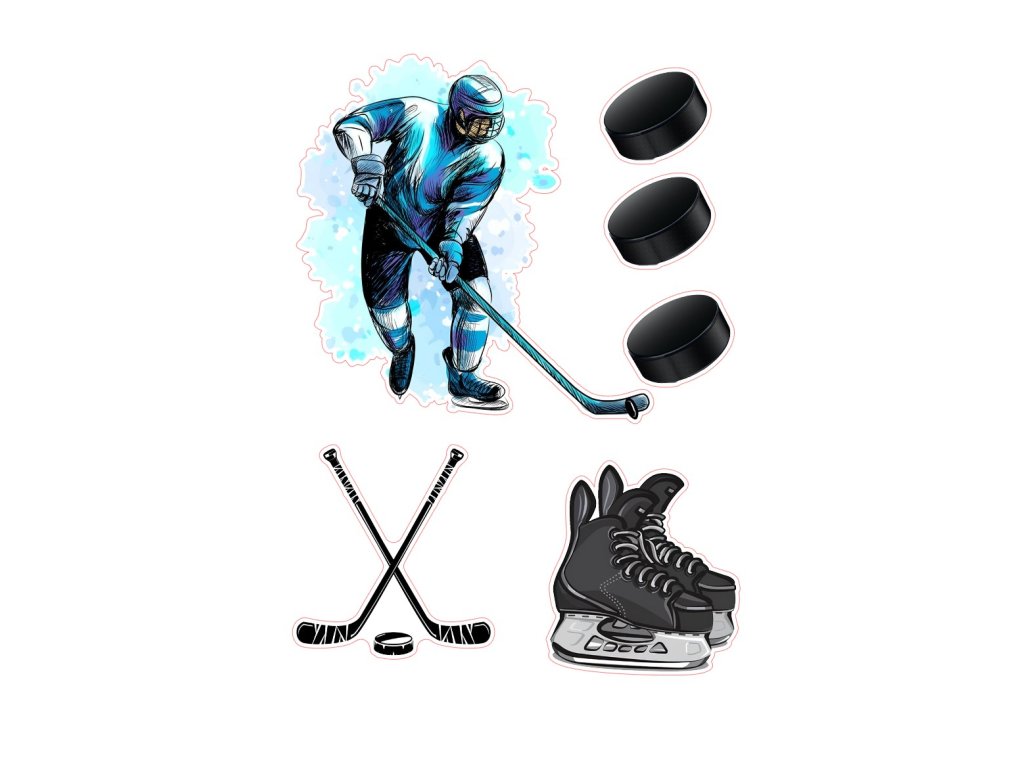 hokej: | hokej, hrac, modry, brusle, korcule, boty, stick, hole, puk, pucky, led, sport, vybava, zapas, utok, obrana, ilustrace, cartoon, |