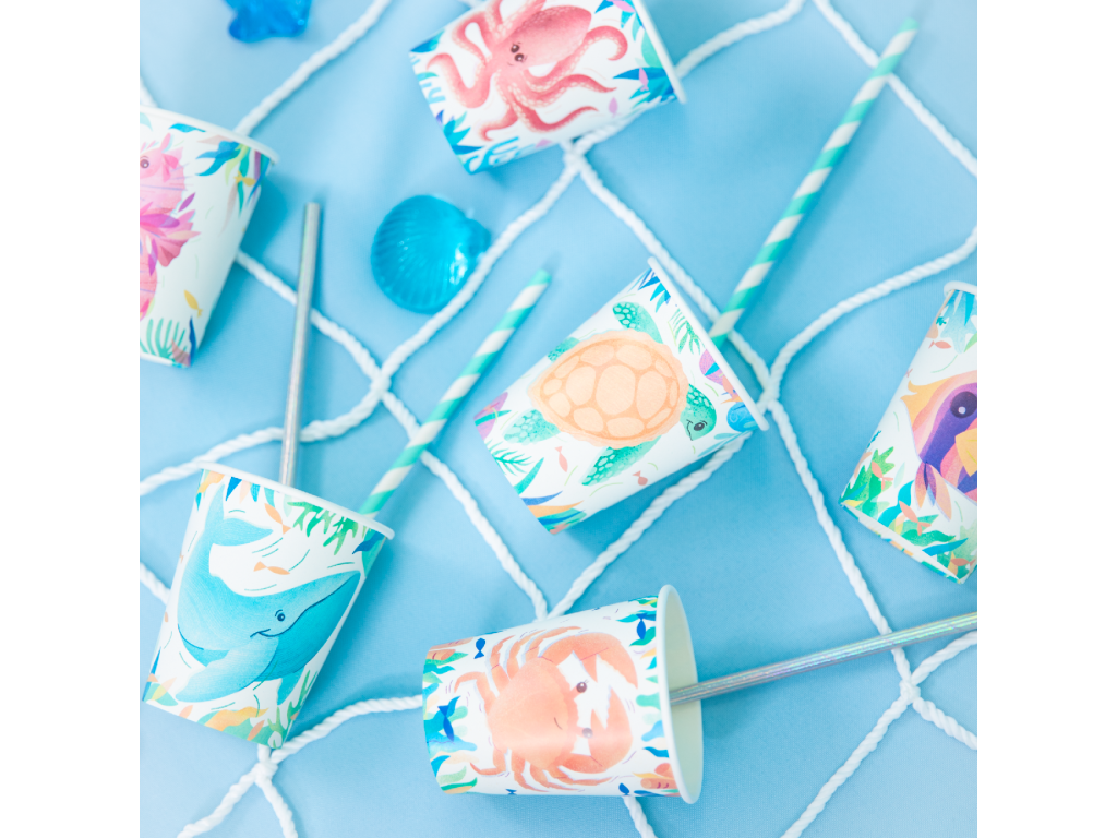 Papírové kelímky mořský svět 220ml, sada 6 kusů