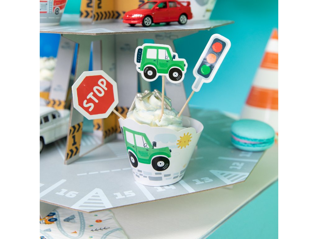 Papírové obaly na cupcakes s motivem auta v 6 druzích.