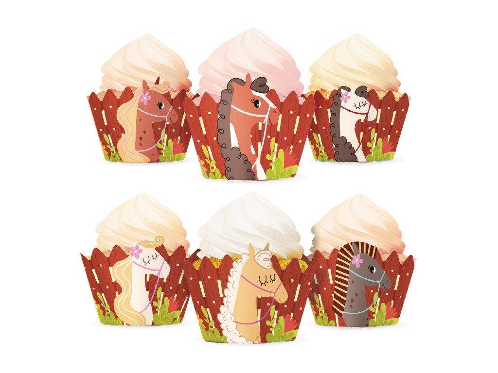 Papírové obaly na cupcakes s koníky v 6 druzích.