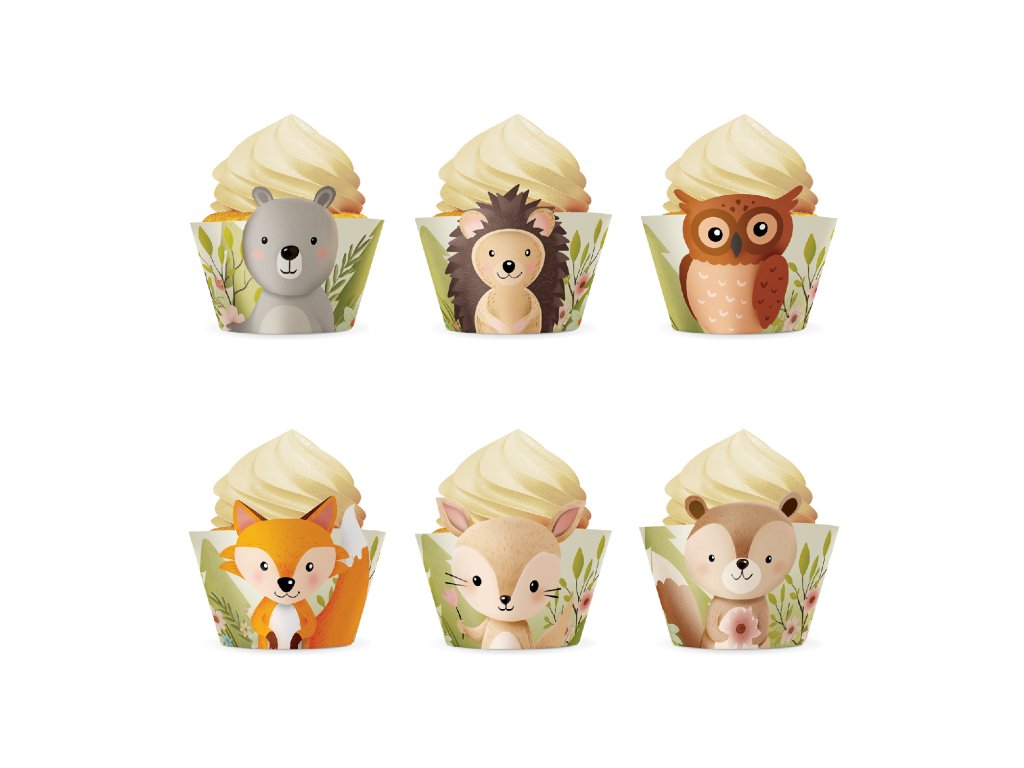 Papírové obaly na cupcakes s lesními zvířátky v 6 druzích.