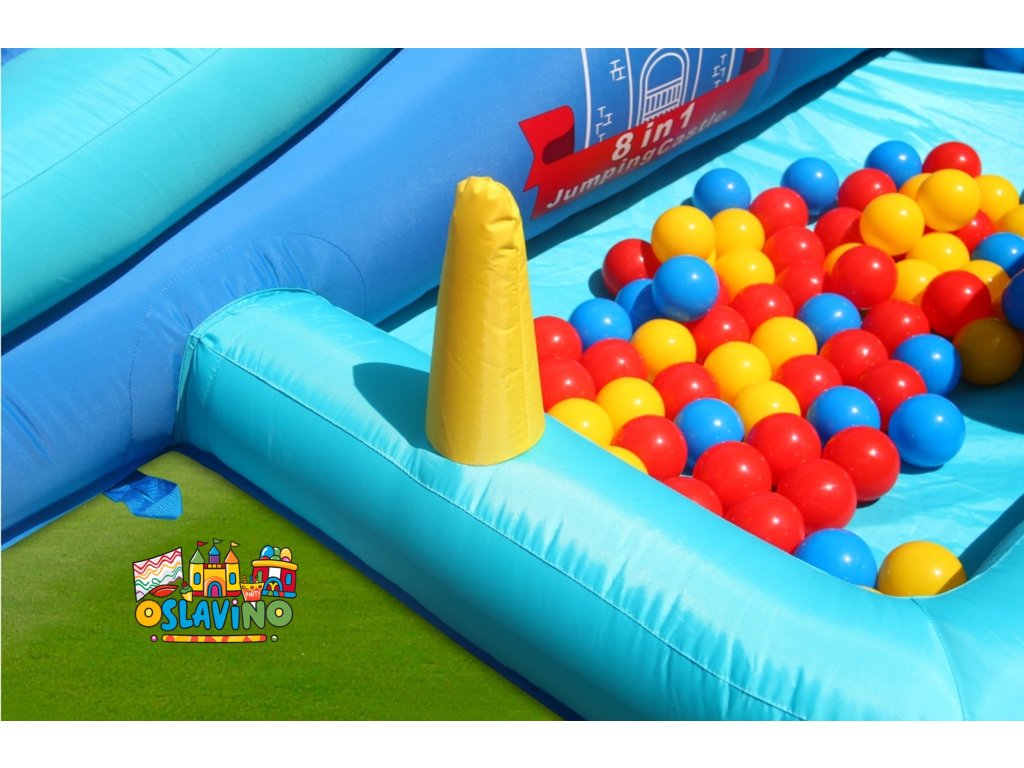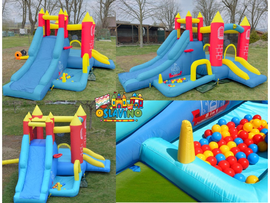 Všechny děti si mohou s tímto skákacím hradem užít opravdu dosyta skákání, klouzání, prolézání, házení, nebo hry v bazénku s míčky.