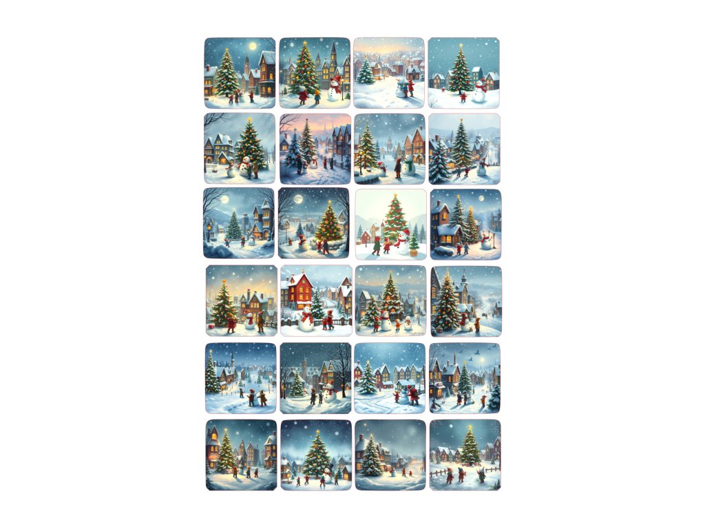 Vánoce: | vánoce, zimní vesnice, vánoční stromek, děti, sněhulák, zimní krajina, pohlednice, advent |