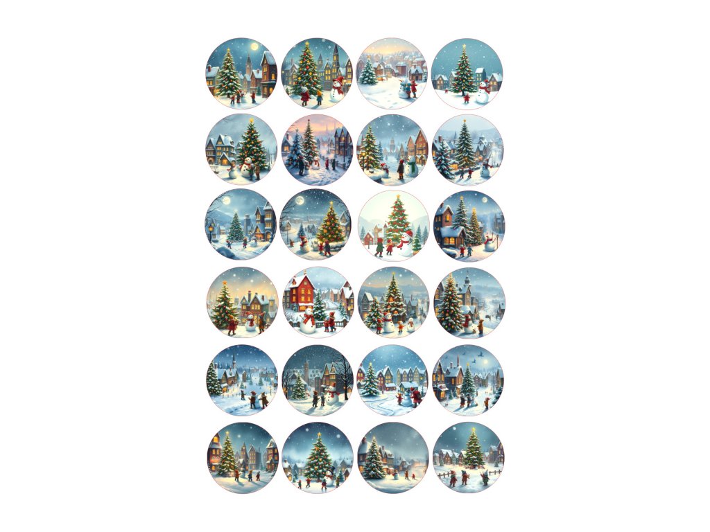 Vánoce: | vánoce, zimní vesnice, vánoční stromek, děti, sněhulák, zimní krajina, pohlednice, advent |