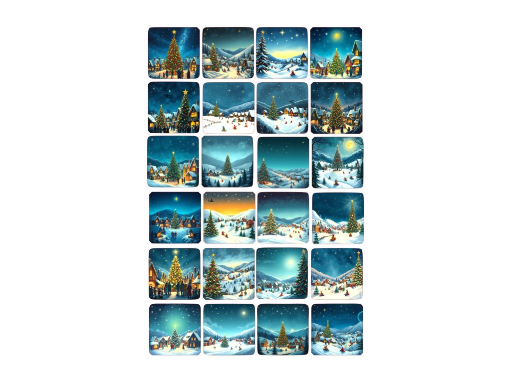 Vánoce: | vánoce, vánoční strom, zimní vesnice, noční obloha, hvězdy, zimní pohlednice, advent |